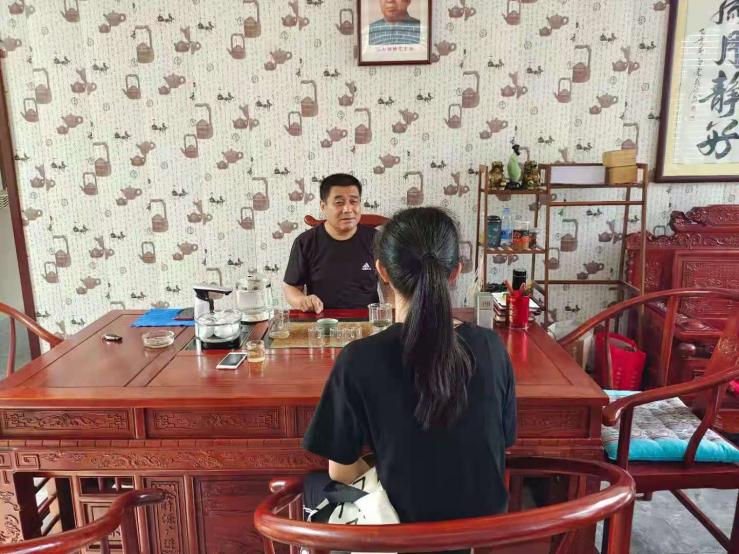 探访期间,李传英老师详细介绍了“秧歌古村”的发展历程以及创立古村的初衷。“树的方向,由风决定;人的方向,自己决定。乡村振兴就是从建设美丽乡村开始,从脚踏实地的一点一滴开始。”面对穷困潦倒的家乡,李老师毅然放弃优厚的待遇,投身于建设家乡的事业中去。据悉,2012年李老师投资215万元,为贫困村袁窦村修路、修桥、清理历史遗留的垃圾湾,解决人民群众出行困难问题、改善生态与生活环境;2013年盘活袁窦村盐碱土地348亩,投资5700万元创办秧歌古村,把农业生产和乡村振兴融为一体;深入挖掘鼓子秧歌黄河文化、齐鲁文化的历史渊源,带动地方经济发展,特别是贫困户就业、新型农民职业培训。在政府乡村振兴政策的支持下,李老师和他的团队共同打造了以鼓子秧歌为主题的乡村农家乐、特色民宿,建有祭祀表演场、军阵演武场、庆丰收表演场,形成吃、行、住、游一条龙服务。“秧歌古村”吸纳了周边近三十名村民在此稳定就业。