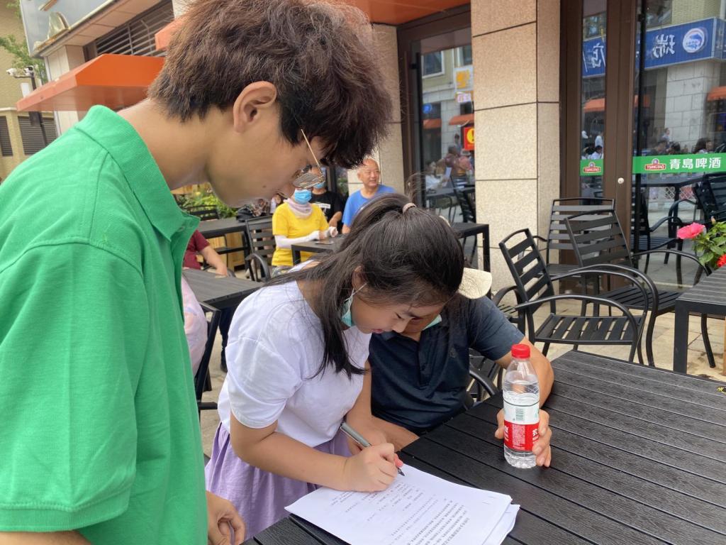 实践队员向游客发放并填写调查问卷