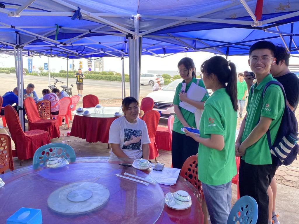 到达考察地点后,实践队员们立即行动,按计划分组进行调查。活动中队员们穿梭于度假村的渔家之中,将自己手中的问卷传递到一个又一个的游客手里,用自己的耐心、细心为不同的游客讲解“什么是水足迹?”“为什么要珍惜水资源?”等一系列问题,游客们也对水资源的保护和利用问题表示关心,并更加深入的了解了“水足迹”的相关知识。同时,队员们走进渔家,在表明来意后,询问了渔家负责人有关“每天的用水量大概是多少”,“每天需要多少斤的蔬菜”,“日人流量大概有多少”等问题,负责人们也进行了热情耐心的解答。之后,队员们向渔家的负责人宣传并讲解了此次实践活动的目的和意义,呼吁商家们重视水资源的利用和保护问题,学习“水足迹”的有关知识,提高节水意识。活动期间,负责拍照的队员及时地用相机记录下实践过程,以便活动后进行总结和反思。烈日炎炎之下实践队员们热情高涨,干劲十足,丝毫不觉疲惫。活动结束后,大家一起反思了此次调查工作中的不足,总结并分析了调查所获得的有关信息,并一同商讨了接下来的实践方案。一天下来,大家收获颇丰。