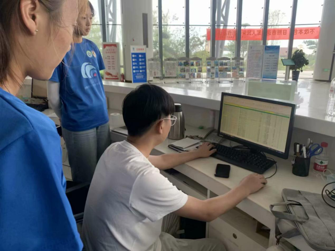 实践队员在山海天服务中心进行志愿服务期间,大致被分为了四个岗位,分别是:市场监管、体温测量、前台咨询、市场调研、城市书房的协助管理。实践队员在熟悉了各自的工作岗位的职能后,尽管刚开始难免会手忙脚乱不知所措,但都能很快进入状态,并以端正严谨的态度来完成分配到的任务,同时向工作人员虚心请教疑惑,工作人员也会耐心解答,并传授自己的工作经验。