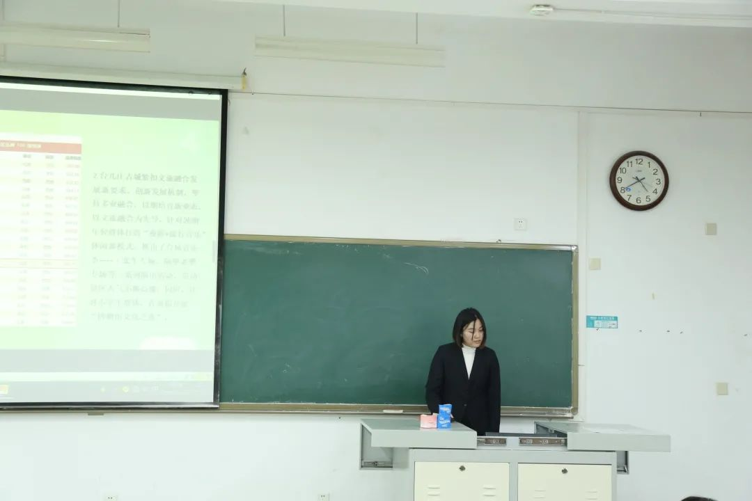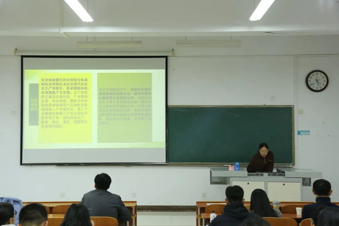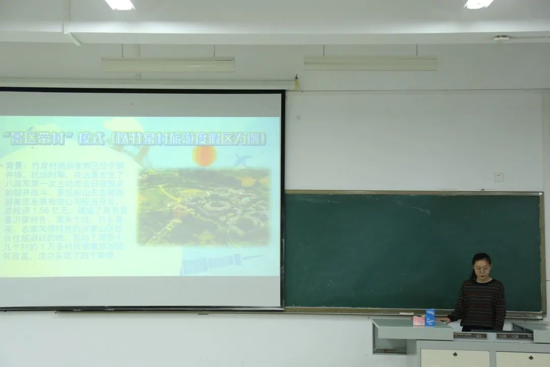 活动伊始,2020级同学分组汇报上段时间的实习调查研究成果。他们对台儿庄古城、曲阜三孔、竹泉村等景区的简介、现状、出现的问题以及提出可行性措施四方面进行演讲。同学们通过查阅大量文献和实地调查,结合乡村旅游振兴,提出自己的独特看法,使自己学有所用。精彩的汇报、精美的PPT、精巧的构思无一不体现麻豆视频