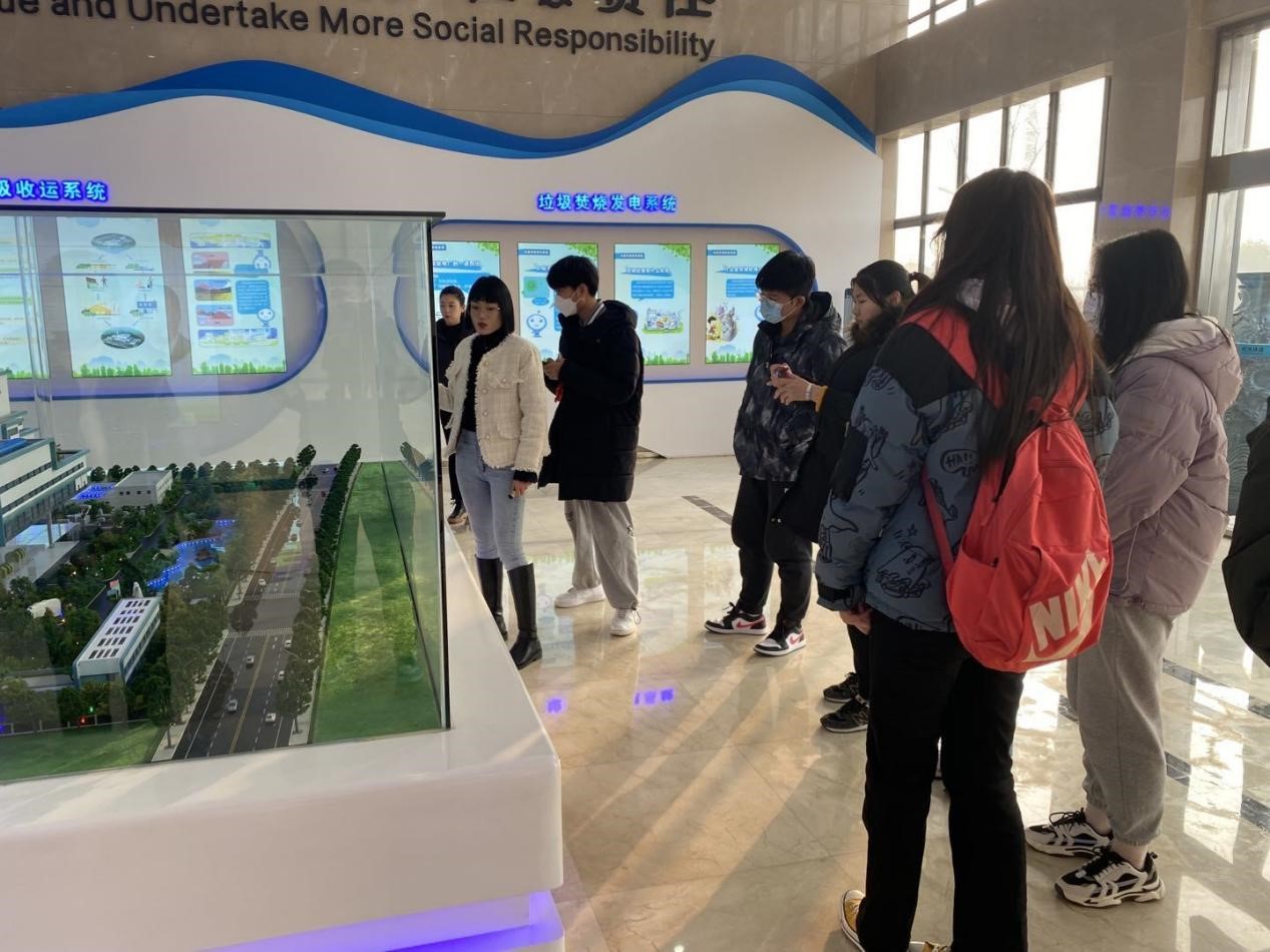在整个参观过程中,实践队员了解到一次垃圾焚烧产生的电能相当于普通家庭一年的用电量,垃圾焚烧发电在居民供电比重中所占的分量也日趋增长,垃圾焚烧发电属于新能源,与传统火力发电相比,其生产方式也更为清洁高效。此外,垃圾处理过程中产生的渗滤液,通过敞开式循环冷却水系统等系列操作可实现水净化,产生的炉渣固体颗粒则通过分选、堆积、固结等生产操作后用以制砖。通过垃圾的生态处理,创造一条绿色产品终端的产业链,有效的降低了传统垃圾处理造成的污染,取得了极大的经济效益与生态效益。