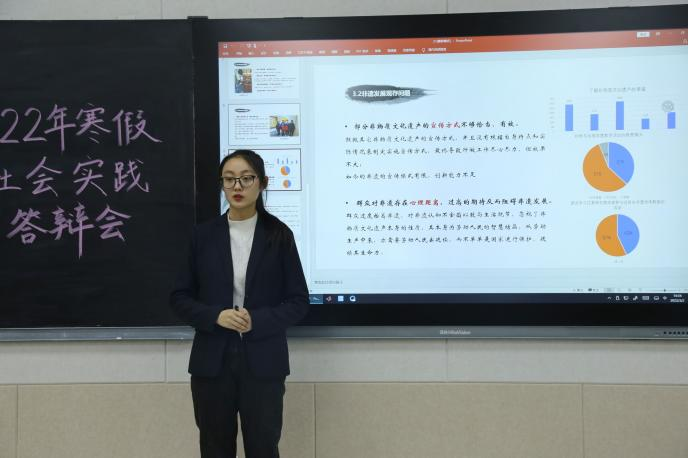举办2022年寒假社会实践答辩会。2021级辅导员董青老师及各实践队参加答辩会。