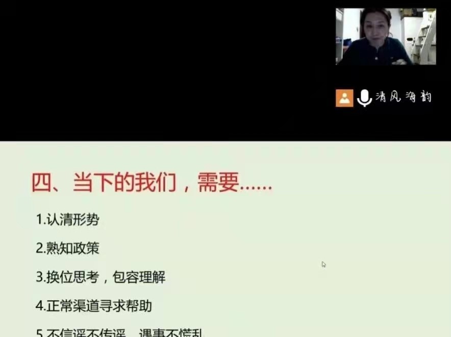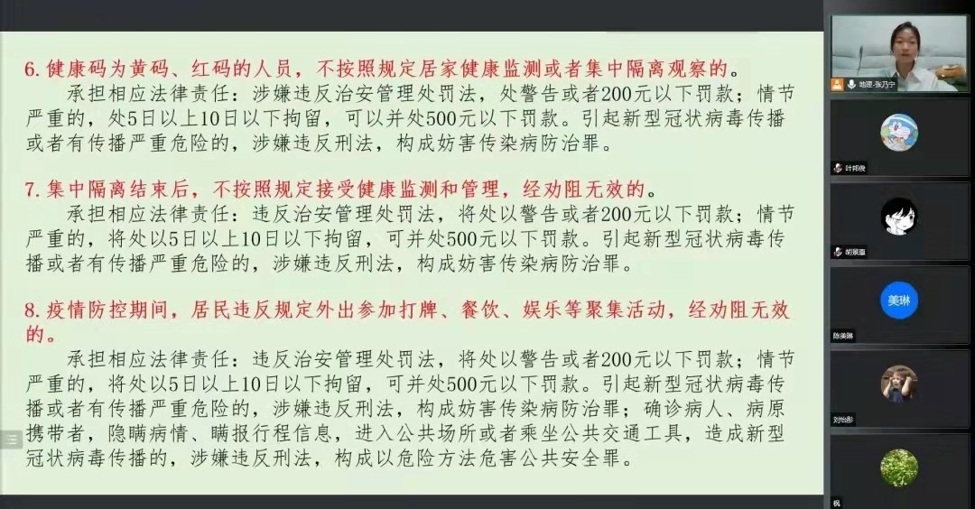 各年级召开疫情防控线上主题班会。班会由各年级辅导员主持。