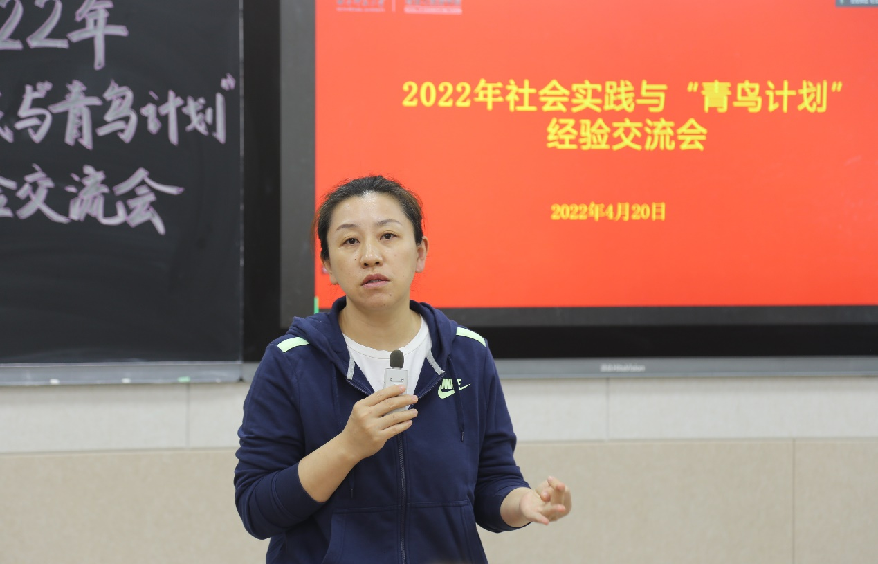 举办2022年社会实践与“青鸟计划”经验交流会。学院团委书记李梅出席会议,社会实践与“青鸟计划”优秀学生代表邱玥、程立、李翼展、王菡、梅云婷担任主讲,2021级全体班团及宣传委员参加。