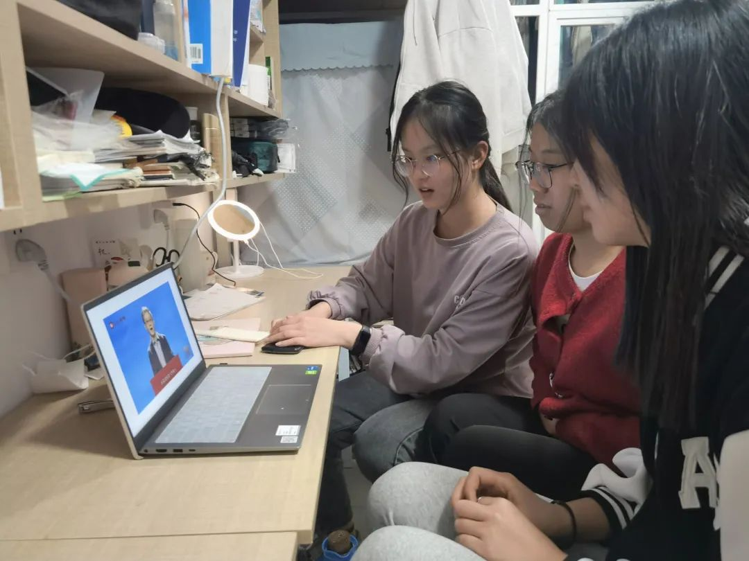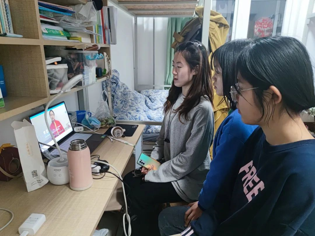 组织全体学生观看同上一堂“冰雪”思政大课,学生代表于S208观看学习。