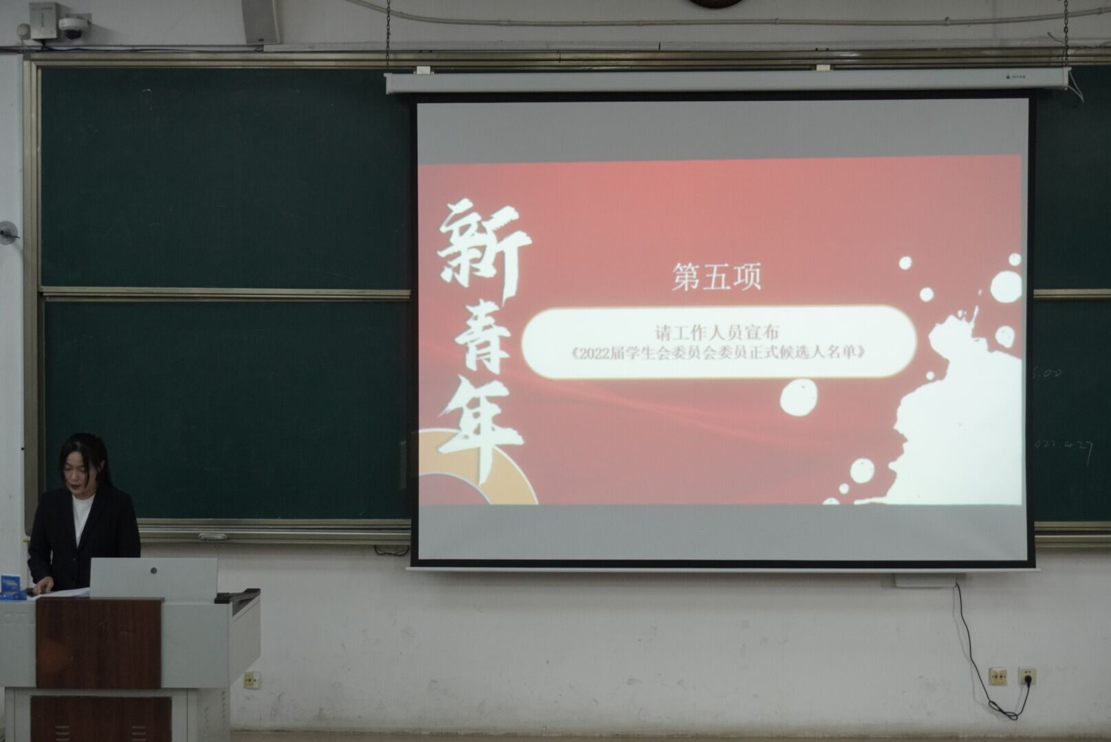 会上,2021届主席团成员程立宣读《2022届学生会委员会委员正式候选人名单》,黄一凡宣读投票规则。全体代表庄重投下神圣的一票。经过工作人员细致严谨的统票,2022届团委学生会主席团成员当选新一届学生会委员会委员。大会在宏亮的中国共青团团歌中胜利闭幕。