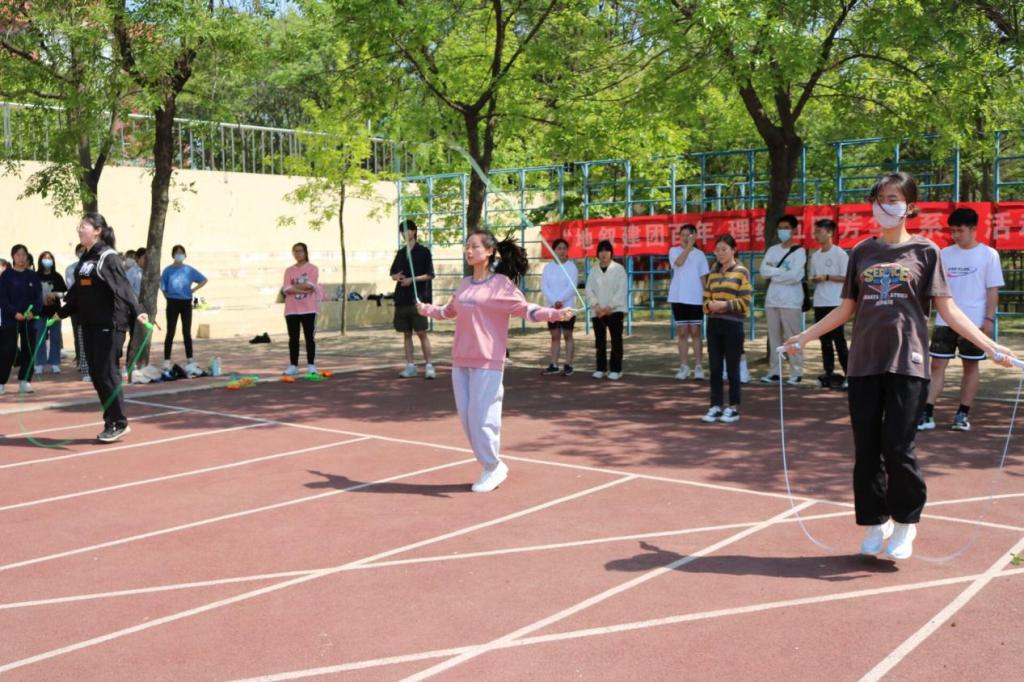 党委副书记刘伟、团委书记李梅、2018级辅导员田青、2021级辅导员董青出席活动。初赛中表现优异的20名单人跳、20名双人跳学生及8个跳大绳班级参加比赛。