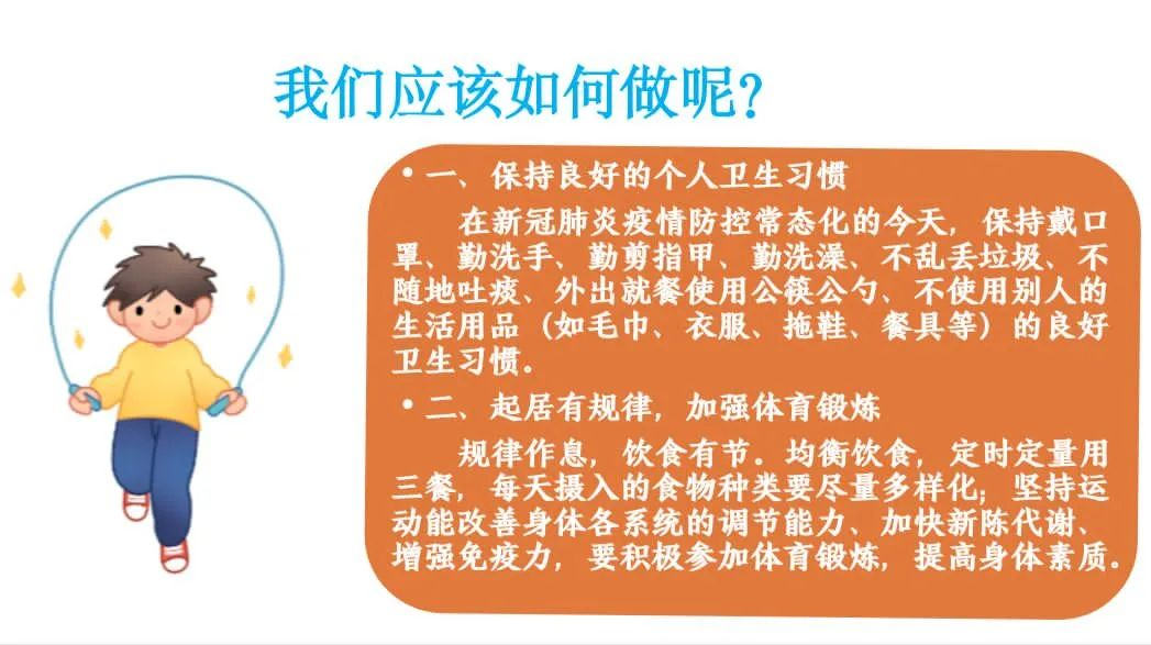 会议倡导,要积极遵守防疫防控要求,养成良好健康卫生习惯,积极向同学们宣传以上良好的卫生习惯,带领大家努力做到,防疫有我在,健康我能行!