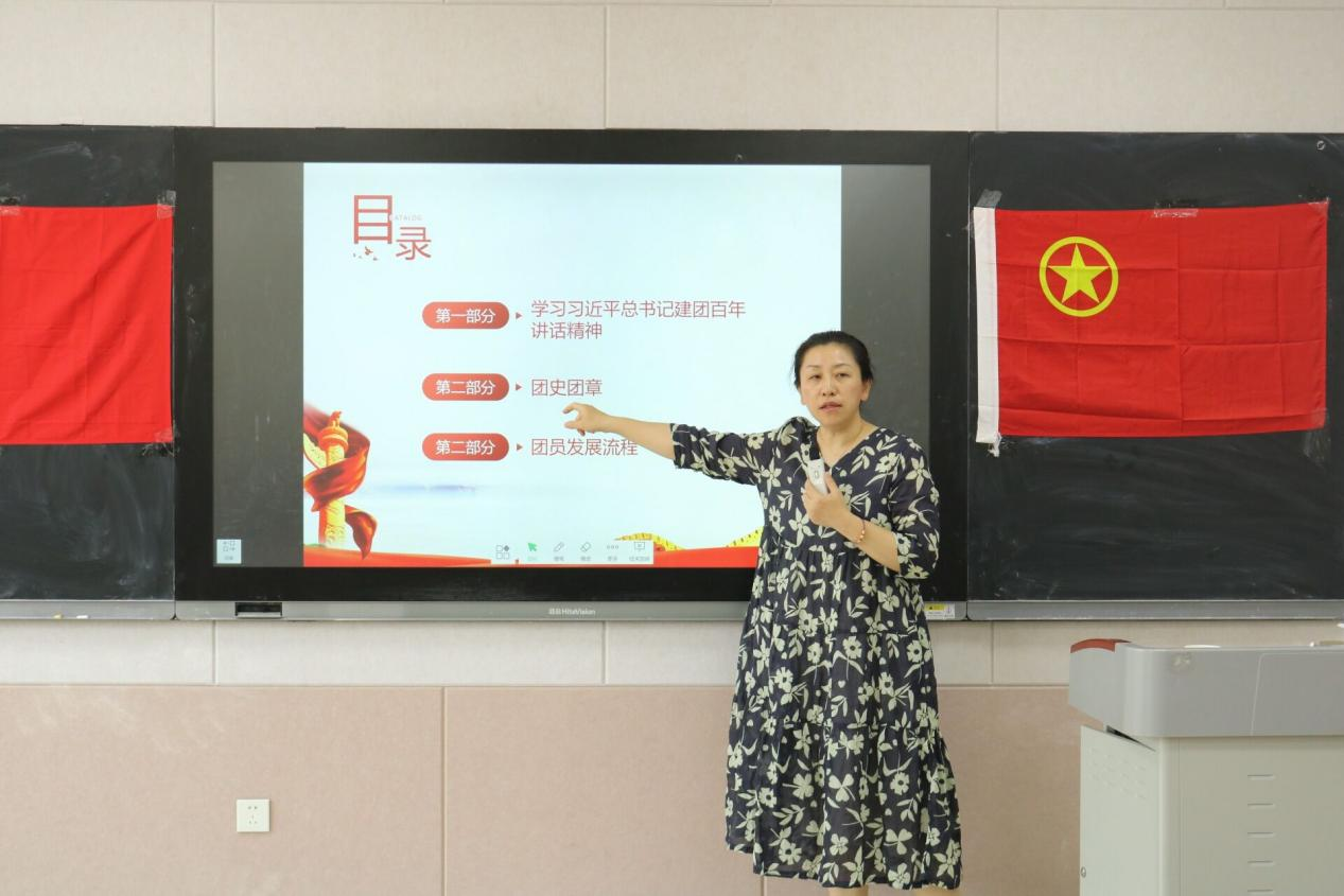 李梅以“做阳光靠谱的青春同路人”为主题,以建团100周年为切入点,带领大家深入学习团的相关知识。培训会上,李梅带领大家认真学习贯彻习近平总书记在庆祝中国共产主义青年团成立100周年大会上的重要讲话精神,介绍不同历史时期共青团围绕党的中心任务所做出的贡献,展示百年来中国共青团与党同心、跟党奋斗的历程,使各位学生干部认识到青年责任之重大、使命之光荣。培训会上,李梅带领大家重温团史团章,通过讲解共青团在各个重大历史节点突出贡献,深入分析团的性质、团的行动指南等重要知识,展现出团的要求和使命。她提到,团章对明确团的属性、推进团的工作、加强团的建设具有重要宣誓、规范和引领作用。因此团章是每一位共青团员的必备知识。培训会上,李梅讲解了基层团务工作,介绍了团员发展流程,号召更多青年学生参与经济发展和生产建设,希望各团支部积极投身于社会实践、志愿服务等项目,为团支部赢得荣誉的同时,在实践中积累经验,树立正确的世界观、人生观、价值观。