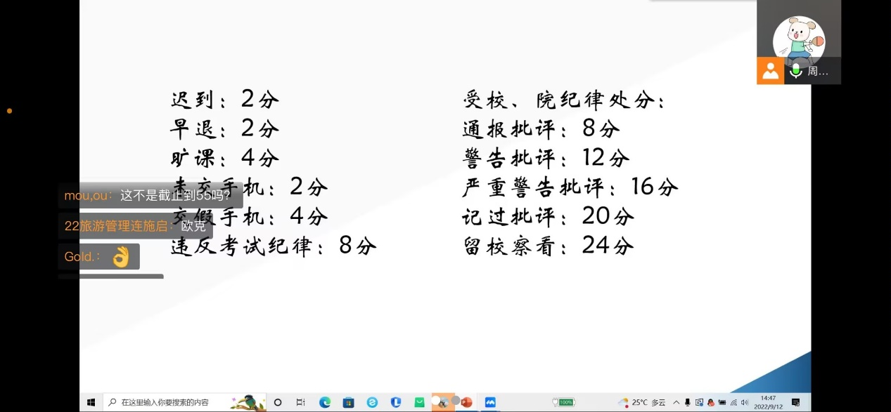 宿舍管理条例,细致讲解了宿舍卫生和宿舍安全等方面的相关内容,引导同学们进一步加深对大学生宿舍生活的了解。纪检部副部长详细介绍了学校规章制度与麻豆视频