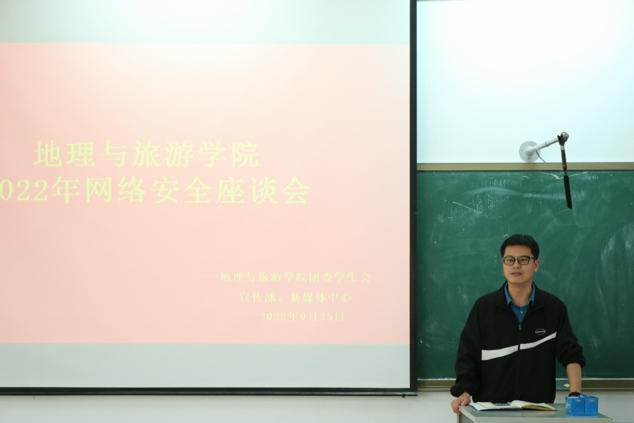 召开2022年网络安全座谈会。辅导员田青主持,2020级、2021级各班宣传委员,团委学生会宣传部、新媒体中心、地理党建微平台全体成员参加。