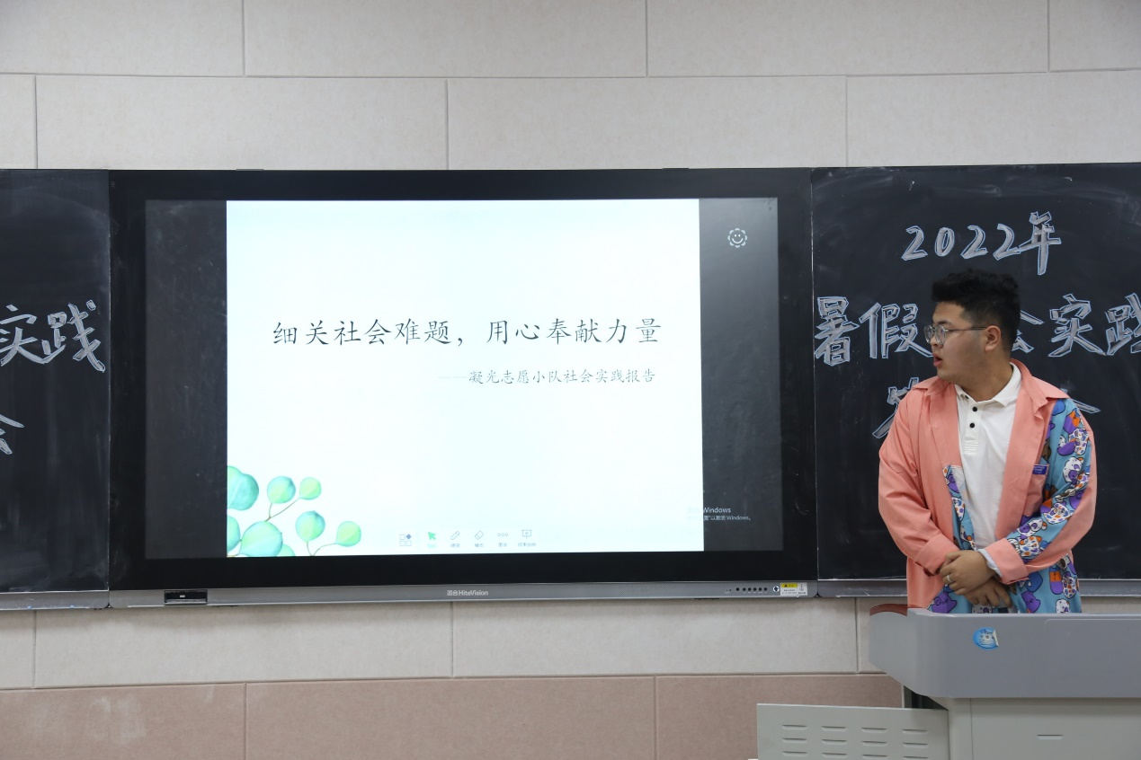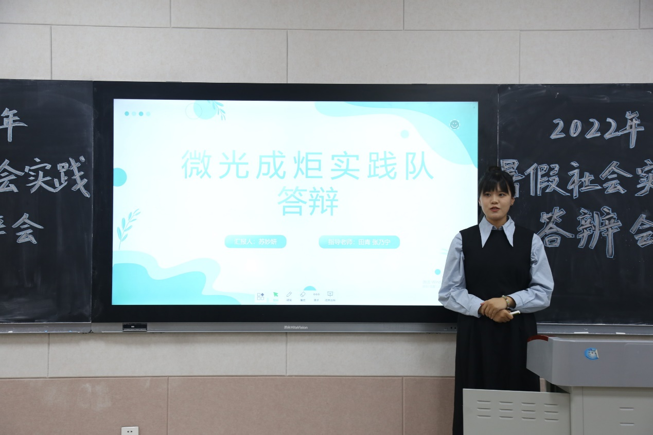于S203召开暑假社会实践答辩会。学院团委书记李梅、2020级辅导员张乃宁以及2021级辅导员田青出席担任评委,各社会实践队伍代表、2021级班委代表及2022级部分同学参加。