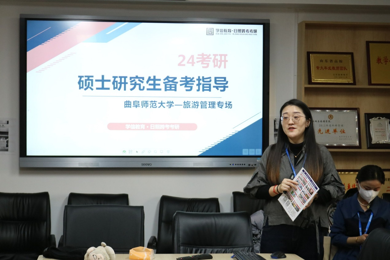 党委副书记刘伟主讲,特邀“跨考考研”咨询老师翟晓蕾讲解,2020级辅导员张乃宁及2020级旅游管理专业全体同学参加。