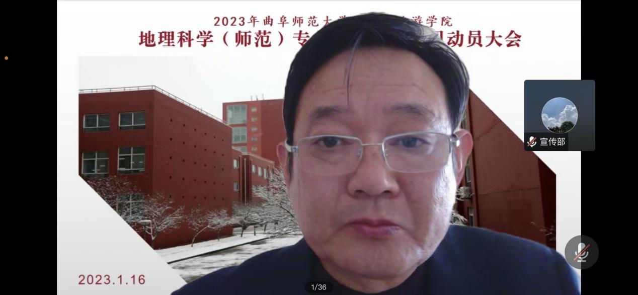 院长张全景教授、副院长吴军教授出席会议,全体教育实习指导老师、辅导员张乃宁老师和2020级地理科学师范专业全体学生参加了动员大会。副院长吴军主持动员大会。