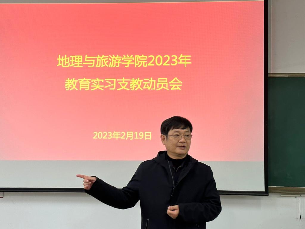 于2月19日下午在S307教室召开2023年教育实习支教动员会。本次动员会由地理科学系副主任周维国主持,院长张全景、副院长吴军,全体实习支教指导教师和2020级辅导员张乃宁出席,2020级地理科学专业参加实习支教的学生参加。
