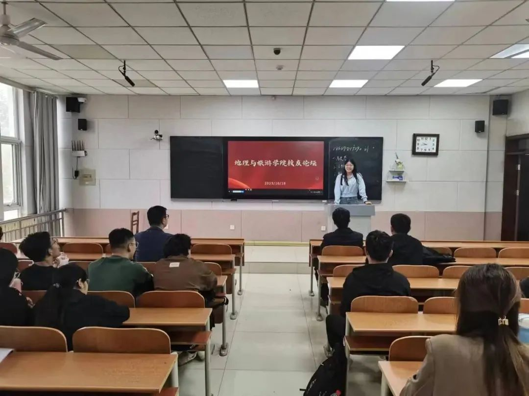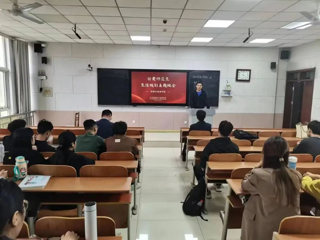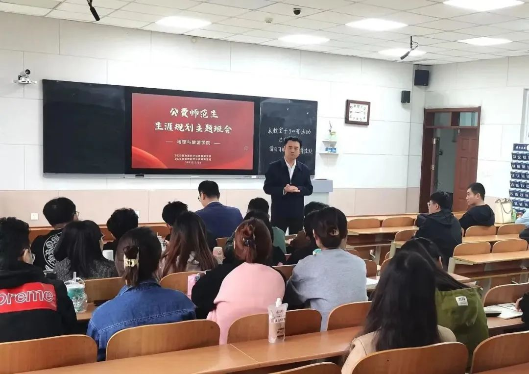 2016级优秀校友刘泽林、张志玲分享经验。2020级和2021级地理科学公师班全体学生参加。