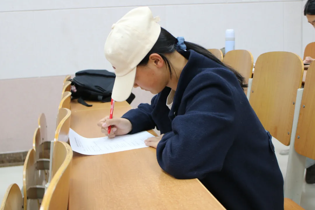 测试以闭卷考试的形式进行,紧扣量化细则,做到对同学们在量化条例学习中出现的问题仔细考察。测试过程中,同学们从容自信,沉着思考,自信地写下答案,表现出对量化条例的熟悉。考试过程秩序井然,较好发挥了“以练促学、学测结合”的作用。