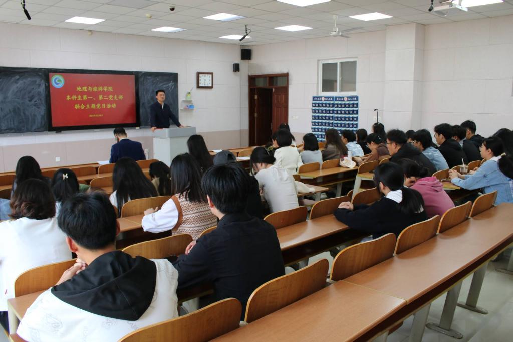 本科生第一、第二党支部联合开展主题党日活动。会议由本科生第一党支部书记田青主持,全体党员参加。