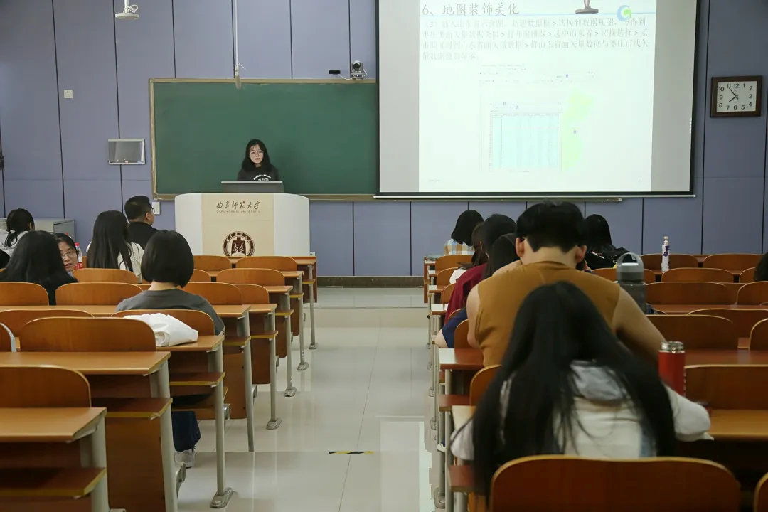 本次活动以授课形式展开,三位朋辈导师以不同主题开展教学,通过朋辈互学、课堂作业检测的方式,充分发挥“朋辈育人”优势,促进优良学风建设。活动伊始,甘唯萌为同学们详细阐释利用ArcGis来进行研究区制图,教授学生如何下载和处理DEM高程数据、如何通过地图的排版和图例的设计来美化地图等专业地理制图知识及技巧。随后,程一凡的课堂向大家介绍剪纸艺术的历史发展和文化内涵,带领同学们认识不同地域的剪纸风格和特点,感受不同地区的文化特色和历史底蕴,共同学习剪纸方法,体会剪纸魅力,传承和弘扬中华优秀传统文化。陈宇翔则以“路牌背后的地理知识”为主题,以问答的形式向同学们介绍在旅行途中公路的指示牌指代的内容以及表明的含义,使同学们轻松愉快地了解到区域地理知识。