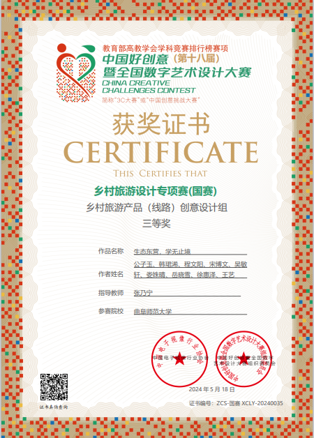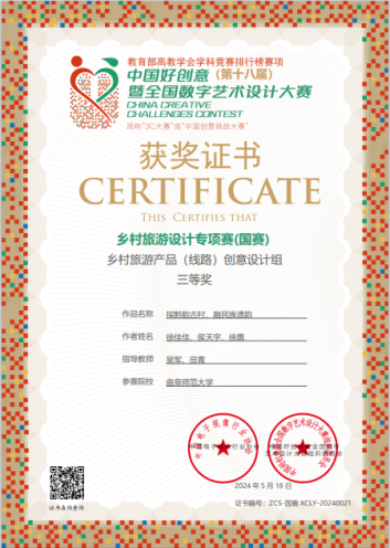 中国好创意大赛是入选教育部《全国普通高校大学生学科竞赛分析报告》A2类赛项。专项赛以“创游天下,文旅共赢”为主题,共有来自1974所高校的12133件作品参赛,经大赛组委会的公平、公正、严格的筛选评判,300件作品获一、二、三等奖,获奖比例只有2.6%,其中一等奖仅有25项。
