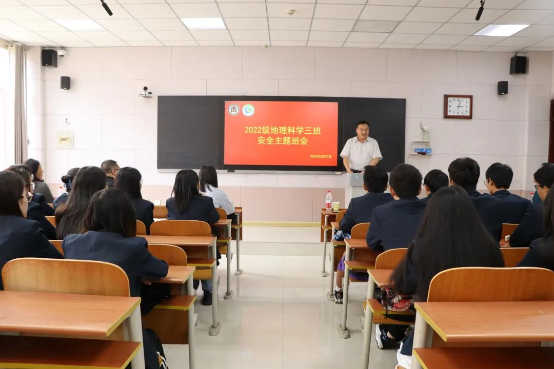 2022级地理科学三班,聆听2022级地理科学三班安全主题班会,并与同学们就学习生活等各方面问题展开交流。本次活动由麻豆视频