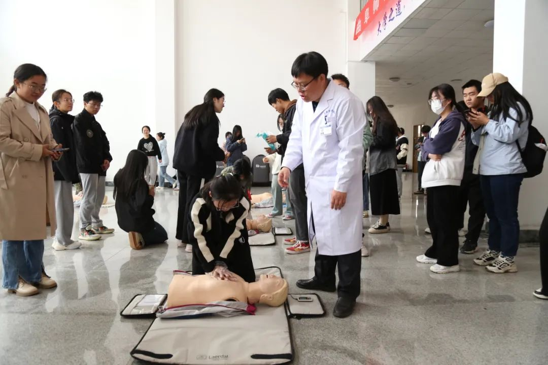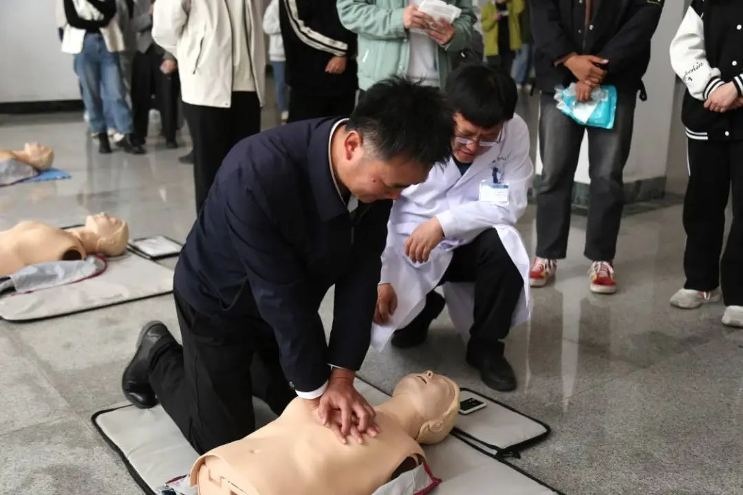 2024年学生急救技能培训。此活动邀请到日照市人民医院主讲团队讲解安全急救知识并进行实操培训。促进了广大师生学习畅通生命通道、风险辨识、避险逃生、自然灾害应对等科普知识,不断提升师生风险防范、安全应急意识和自救互救能力,营造浓厚安全氛围。