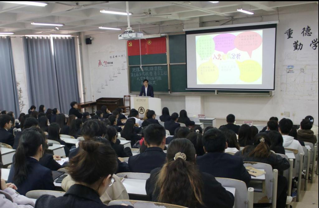 培训会伊始,苏占兵以坚定理想信念,牢记党的宗旨为主题,展开全方位的讲述。他重点强调,广大青年学生要端正入党动机,只有正确树立入党动机,才能经受住考验,并对实际案例进行分析,提醒同学们切勿盲目攀比、急躁沮丧。在社会主义现代化建设时期,考验是始终存在的,青年学生要以共产主义为信仰,有被考验的信心与决心,保持警惕,用智慧去应对考验。随后,苏占兵从党的宗旨入手,要求同学们牢记并在实际行动中体现党为人民服务的宗旨。他还提醒同学们,必须对我国国情有清晰认知,牢记共产主义远大理想。最后,他通过讲解革命故事,帮助同学们深刻了解到积极奉献的重要性,进一步坚定同学们为国家繁荣昌盛而奉献的决心。