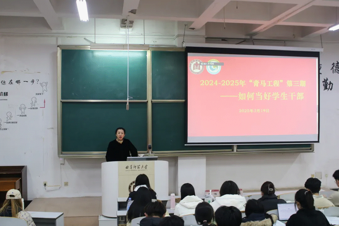 于E103召开2024-2025学年第三期“青马工程”大学生骨干培训会。本次会议由学院团委书记李梅主讲,2025届团委学生会全体成员参加。