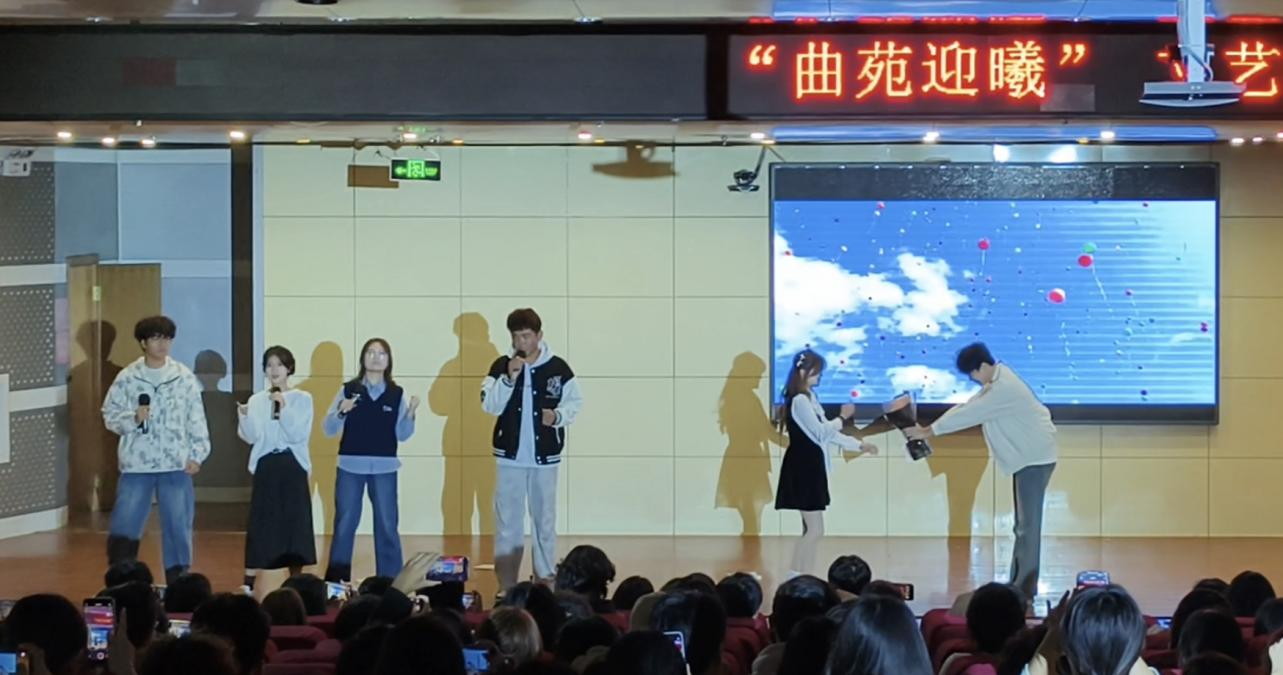本次晚会中,《甜序初启》以“青春里的心动序章”为主题,开场便用《你的男孩》《情非得已》《告白气球》的歌曲串烧点燃氛围。轻快的旋律里,演员们以灵动的歌舞复刻出校园里的青涩悸动;以自然灵动的互动、真挚饱满的情绪,把青春里的“甜”具象成舞台上的笑与暖,每一个细节都戳中观众的校园记忆,迅速掀起全场共鸣。