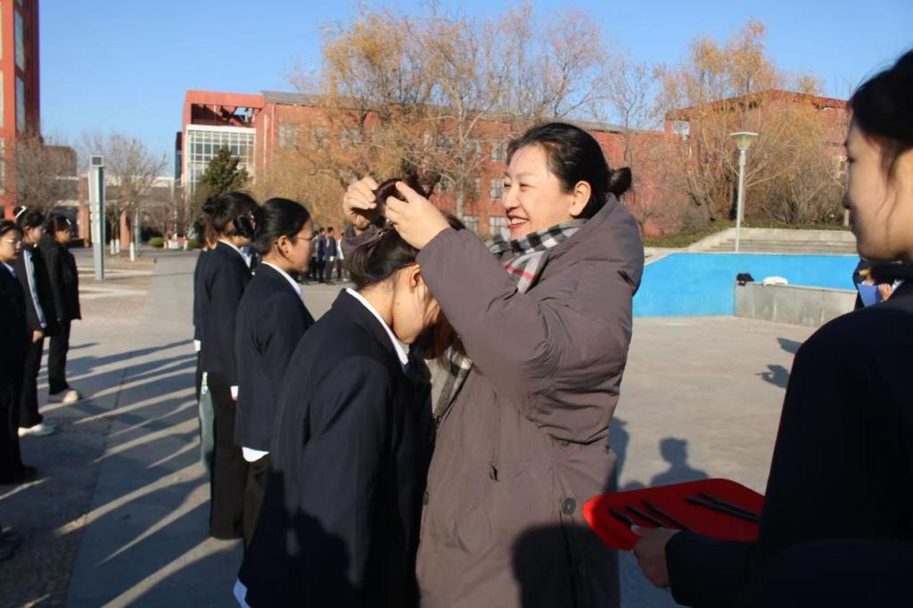 活动伊始,学子们共同追溯汉族冠礼、笄礼的千年文脉,并了解成人礼承载的文化内涵与时代意义。随后,董青向全体学子送上成年祝福。她勉励同学们以成年为新起点,树立远大理想,涵养优良品德,不负韶华时光。学生代表王新童分享成长感悟与成年期许。她表示,青年学子应秉持“诚实做事,踏实做人”的信念,在时代征程上稳步前行,让“犁牛之子”的坚韧品格绽放光彩。加笄仪式上,李梅、董青为参礼成员加笄,学子们共同面向孔子像行揖礼,为本次成人礼画上圆满句号。