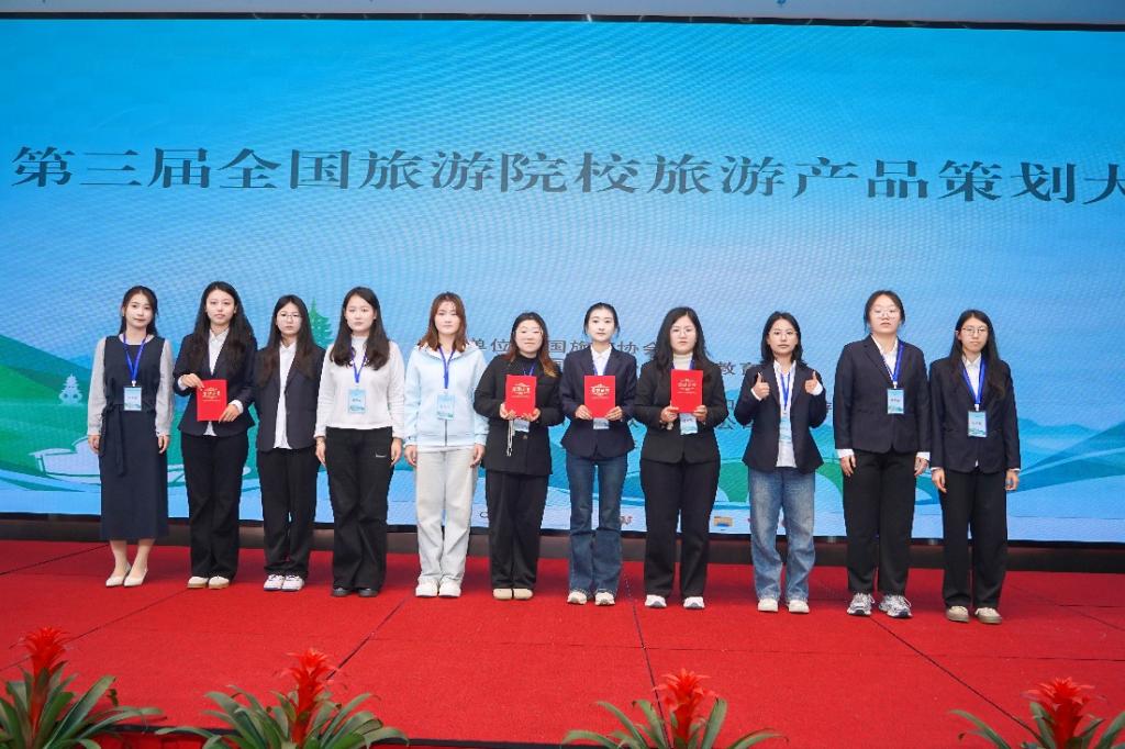 本次大赛以创新策划为核心,采用“方案盲评+现场答辩”双环节模式,得到了旅游院校师生的积极热烈响应,共吸引了多所旅游院校的1345支队伍参赛。决赛分两阶段展开,第一阶段需抽取工单完成含客户需求、产品特色、行程安排等核心内容的策划方案,经“盲评”多维度打分,我校5支团队凭借精准响应与创新设计跻身全国高校前40强;第二阶段通过理论测试与方案宣讲答辩,其中“海防少年研学营”团队(学生团队:李逸菲、程文阳、刘勇伽、刘静茹;指导教师张瑜、田青)围绕“慢享时光·颐养身心·文化共鸣”核心主题,设计开发出“普陀渔味·银发颐养行”康养产品,展现出扎实的专业功底与临场应变能力,成功斩获大赛一等奖及奖金。