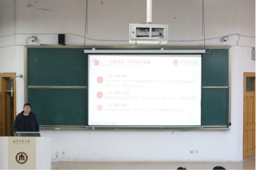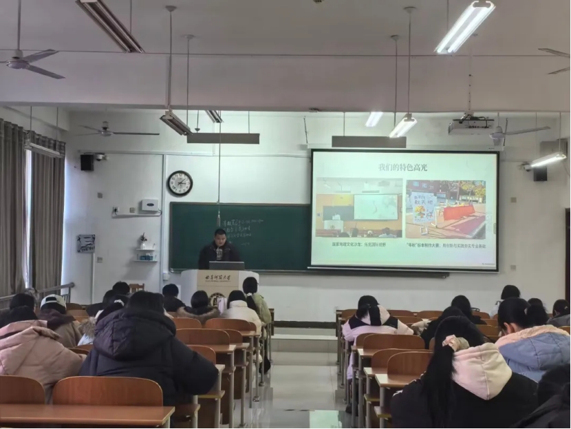 刘伟强调推介会旨在搭建应届生求职交流平台,助力同学们做好职业规划,学院将持续整合资源为毕业生就业保驾护航,鼓励大家夯实本领开启职场新征程。吴军讲解毕业相关事项,强调毕业生需修满学分、严守学术诚信底线完成毕业论文。潘涛老师则围绕毕业论文撰写叮嘱毕业生精准选题、加快推进开题与初稿撰写,密切对接指导老师并明确任务节点,确保论文工作有序推进。