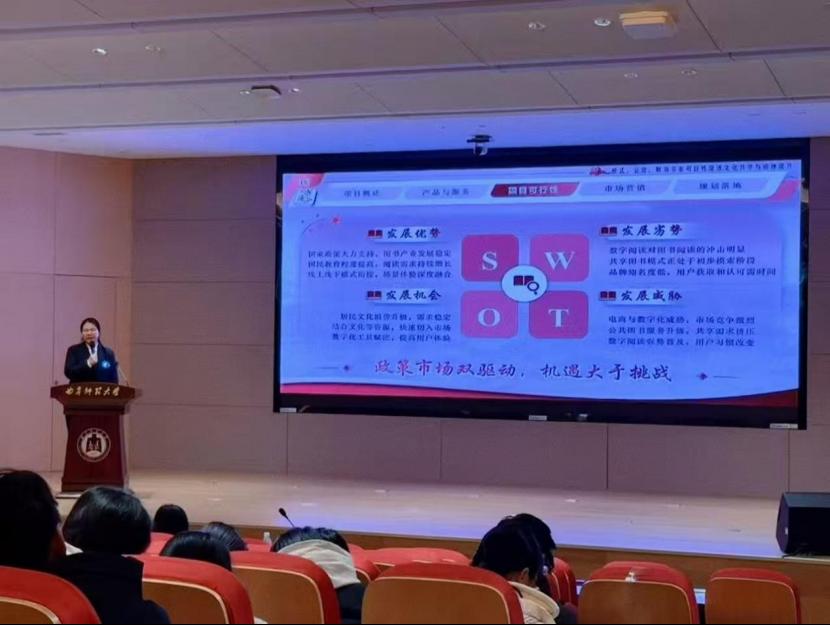 “梨润胶东·IP新生”、“‘书’途同归——智慧共享站”两个项目入围校级决赛。答辩现场,“梨润胶东·IP新生”项目负责人张乃文与队员夏英语、“‘书’途同归——智慧共享站”项目负责人赵昌远与队员刘懿萱沉着应答,自信推介项目成果,凭借扎实的专业能力与创新实践水平赢得评委认可。