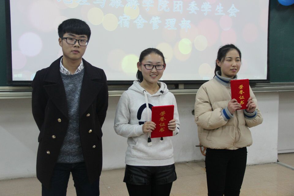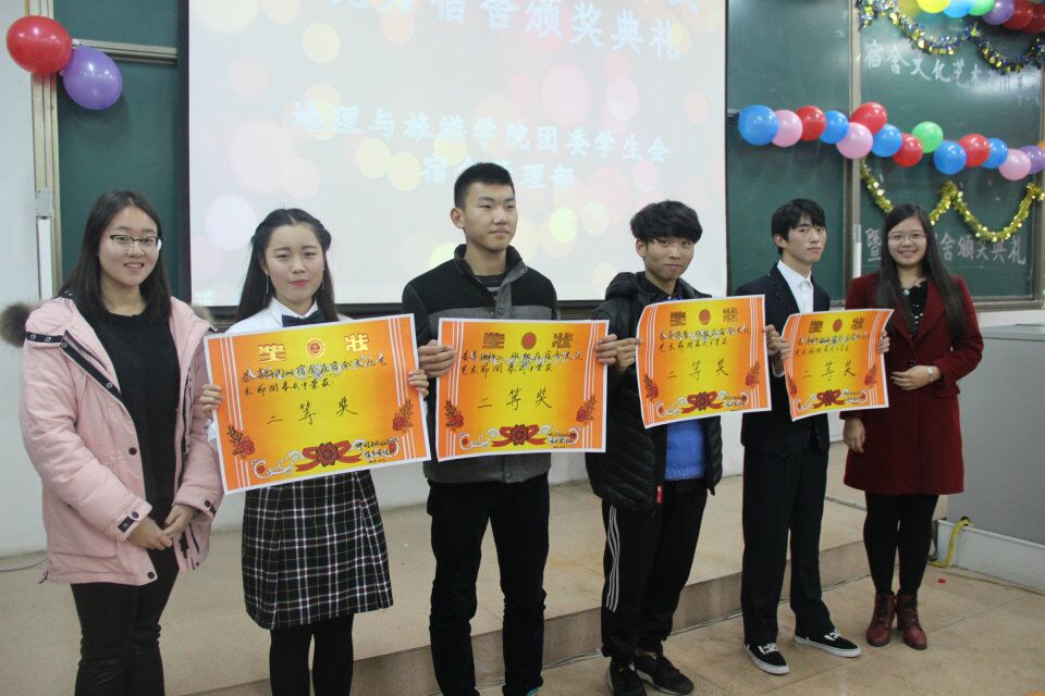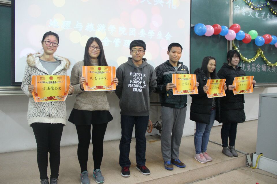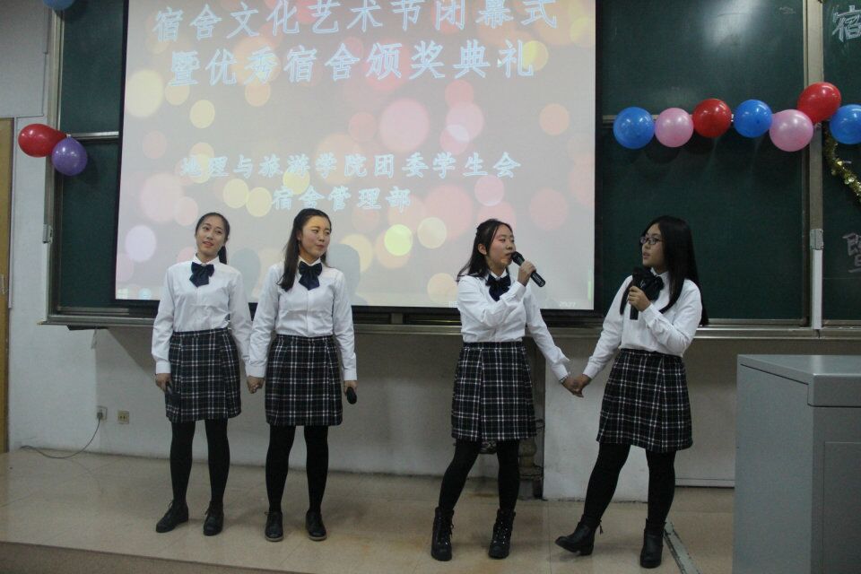 本次活动分为优秀宿舍才艺展示、班级才艺大比拼、颁奖典礼三部分。活动伊始,啦啦队热情洋溢的舞蹈点燃了全场的气氛,精彩的节目比拼正式开始。由各宿舍带来的歌曲《房间》、《真心英雄》、《你如四季》等,有的婉转动听如天籁之音,有的慷慨激昂激荡着每个人的心灵,也有的真挚深情令人动容。各班带来的小品也同样的精彩纷呈,承包了观众们的笑点:地理科学一班的《我的路》爆笑全场;地理科学二班的《以貌取人》以精湛的演技赢得掌声阵阵;土地资源管理班的《吃面》寓意深刻;旅游管理班的《总监驾到之青春校园》笑料不断。中间的游戏环节紧张有趣,文艺小组成员带来的歌曲令人心旷神怡。经过激烈角逐,四季花园7#2-402大厅的《慢慢懂》,地理科学一班的《我的路》获得一等奖,此外本次活动还对在宿舍手工艺品大赛中获得良好名次的宿舍和卫生检查表现优秀的宿舍进行了颁奖及表彰。