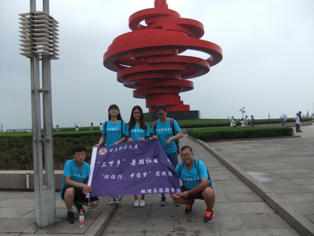 环保行,中国梦”队队员第一站来到了青岛市五四广场。