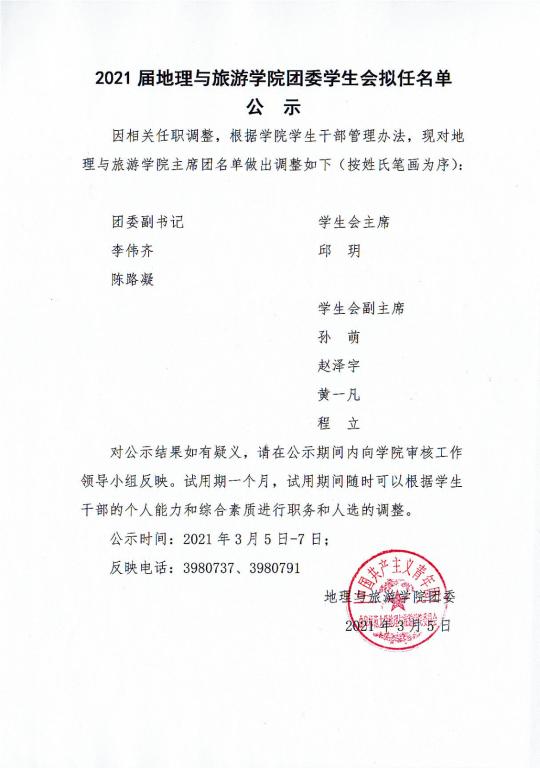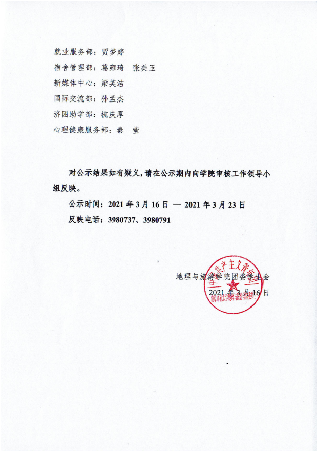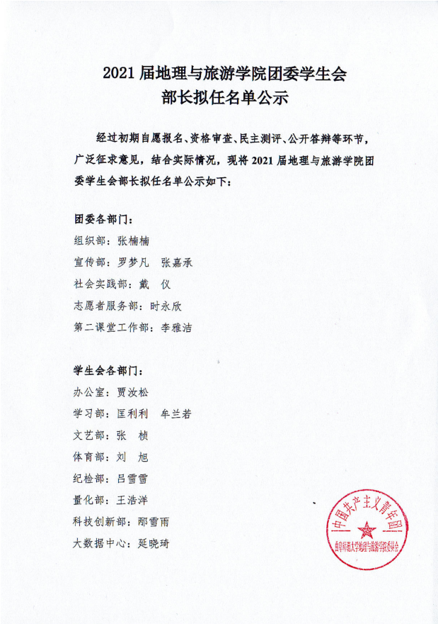 2021届麻豆视频 团委学生会副部长拟任名单公示