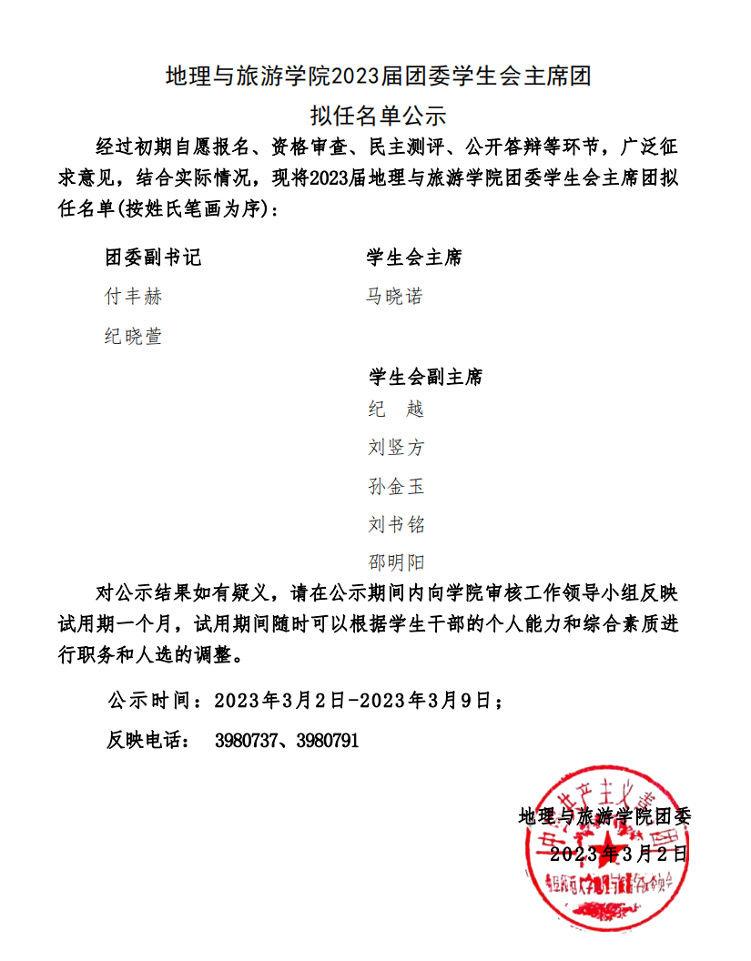 麻豆视频 2023届团委学生会主席团拟任名单公示