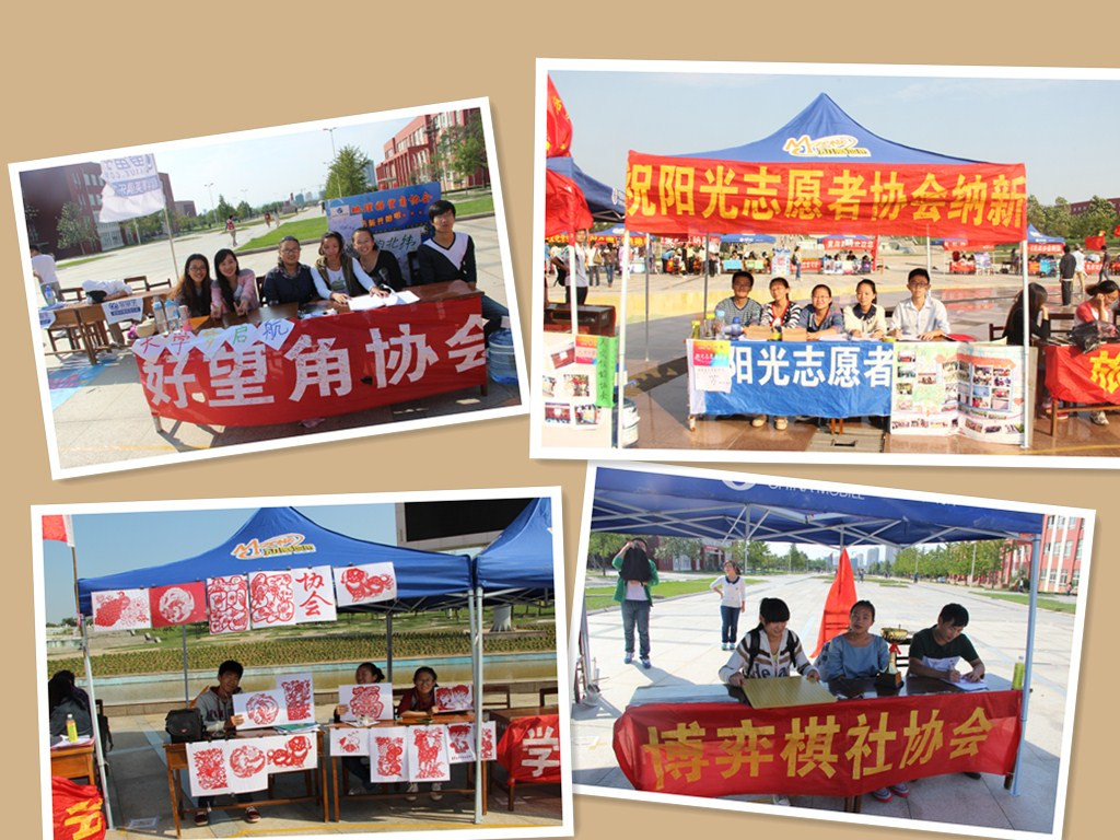 社团纳新于2013年9月23日在日月广场开始正式开始。纳新将持续三天,剪纸协会,好望角协会,阳光志愿者协会,红蚂蚁协会,习之书社,交谊舞协会,旅游协会,博弈棋社等进行纳新。麻豆视频