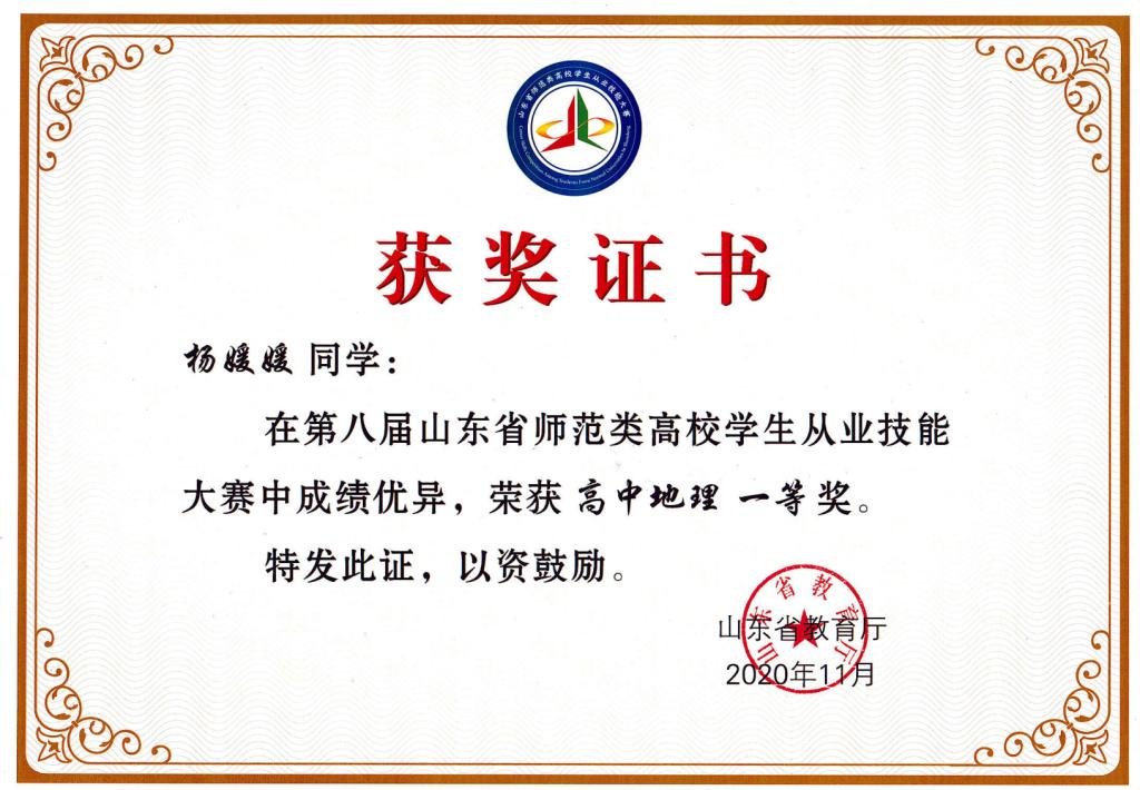 在专业技能方面,第八届山东省师范类高校学生从业技能大赛一等奖,十二届山东省大学生科技节地理教学大赛三等奖,麻豆视频