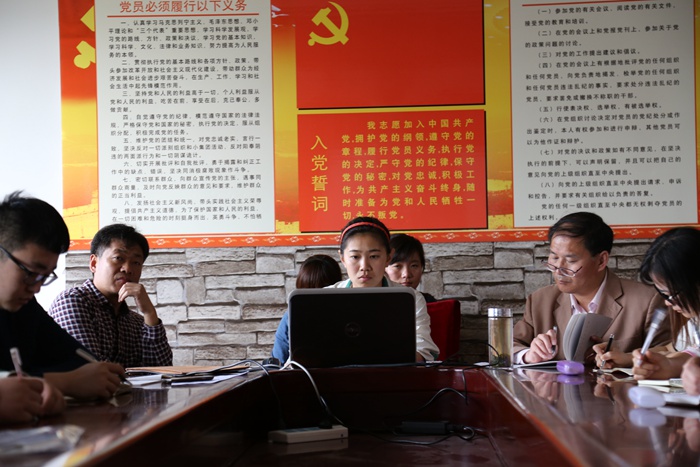 党总支组织教工党支部、研究生党支部和本科生党支部的全体党员在学院会议室进行理论学习,学习习近平总书记系列讲话精神。