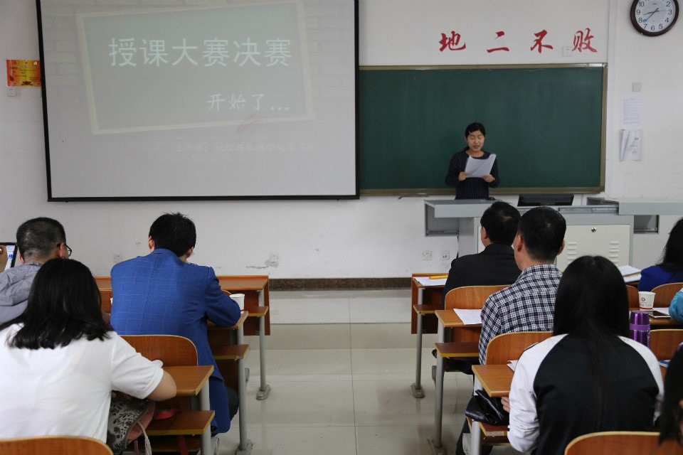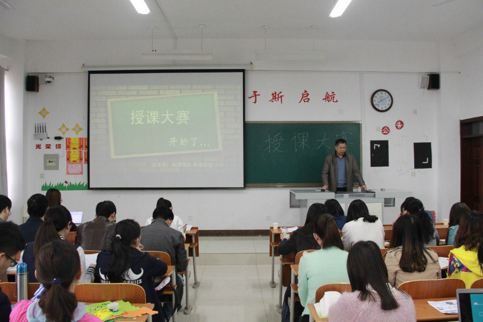 团总支学生会主办,学习部承办的2013级地理科学师范生教学技能大赛决赛在S215教室举行。代合治院长应邀担任评委会主任,12位教育实习指导老师担任本次大赛的评委。