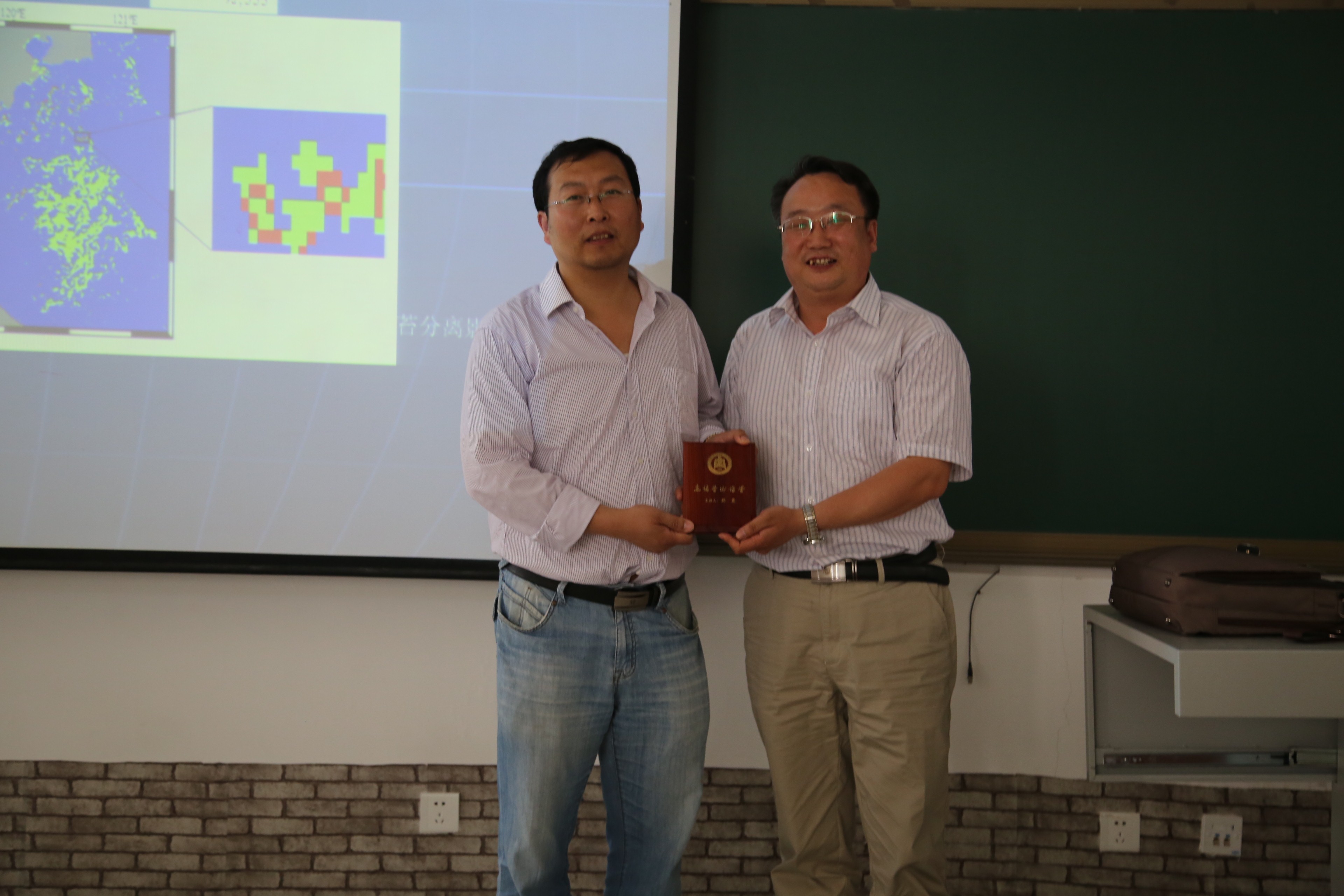 进行学术交流,并做了题为“海洋遥感信息探测与应用”的学术报告。韩震教授通过对光学遥感在赤潮和绿藻监测、海冰、海温、渔场环境监测及微波遥感在海面波浪场、风场、海洋内波、海洋污染、运动船只识别、河口及海岸带地貌演化的应用等方面对同学们进行了详细的介绍,并对有关的典型产品及业务化运行、海洋遥感的发展趋势进行了分析。在报告会中,与参会同学进行了互动交流,就同学们关心的问题及如何利用遥感数据进行科学研究进行了解答。