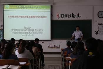 在提问环节,陈亚宁研究员与同学们就干旱区气候、水文、生态等问题进行了全面而又深刻的研讨。通过本次报告,同学们清楚地了解了丝绸经济带关键区的水资源利用与生态安全的现状,提高了理论知识与具体实践相结合的能力,对于进一步提高地理学专业素养有着重要意义。