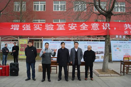 学校实验中心负责人从实验室不安全行为和不安全环境着手,强调了实验室安全事故发生的原因,并且强调同学们要具备安全意识、规范自己的行为。保卫处负责人从实验室防火安全、仪器设备使用安全、用电安全来教导学生加强实验室的安全防范意识、提高安全防范能力。活动以实验室防火安全为主,领导老师演示了灭火器的使用方法并且让现场师生亲自实践、体验,切实提高了大家的实验室安全防范能力和技能;活动同时还组织了实验室安全知识答题比赛。