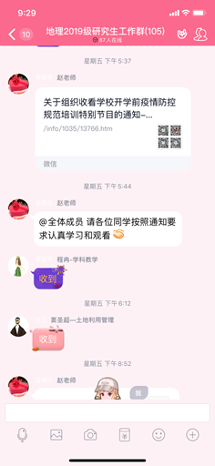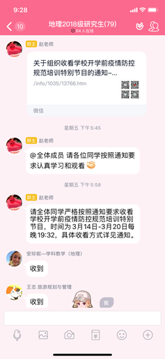 2018级地理学研究生王志表示,通过观看这次节目,我对这次疫情有了更加全面的认识,学习到更多防控疫情的科学措施,意识到在返校过程中做好个人防护工作的重要性。2019级地理学研究生窦圣超提到,疫情防控仍然处于关键时期,我们丝毫不能放松,我会更加认真地学习各项疫情防控知识要点,从自身出发做好每一项疫情防控工作,为早日回归学校做好第一步准备。