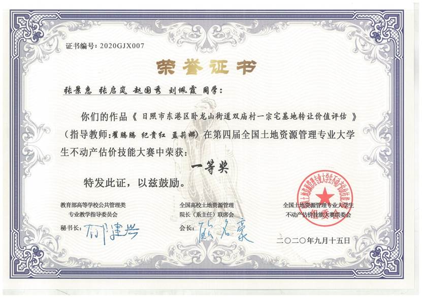 近日,由教育部公共管理类教学指导委员会、全国高校土地资源管理院长(系主任)联席会主办、麻豆视频 承办、日照市规划设计研究院集团有限公司、德恒土地房地产资产评估测绘(山东)有限公司、山东致远中信土地房地产评估咨询有限公司等单位协办的第四届全国大学生不动产估价技能大赛圆满结束。