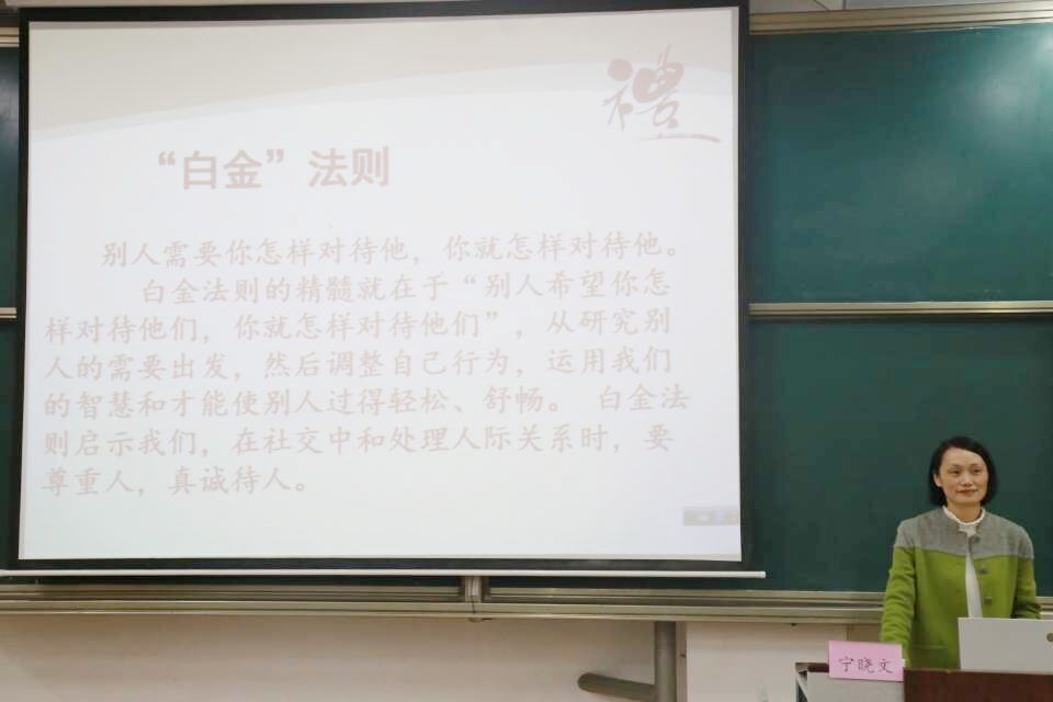 团委书记宁晓文为同学们讲解待人的“白金”法则