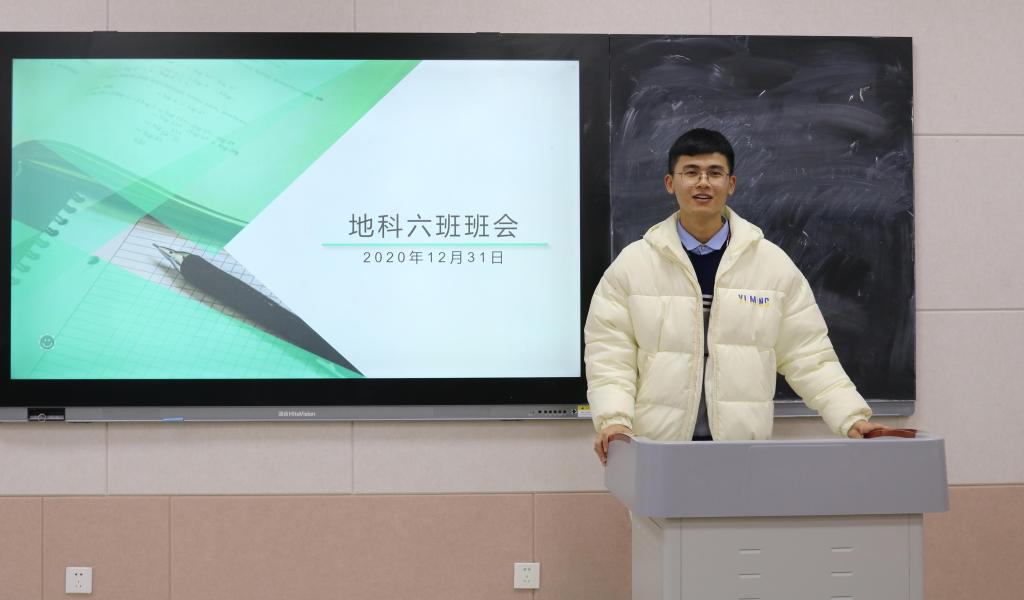 地理科学六班班长王守祥在主持班会