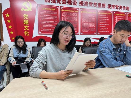 会上,党员发展对象高冉、王湘臻、徐清宸、张文慧、郭新月、苏已昂、田颖、王季、王俊懿、张彤、钟丽君、杨殿赞依次宣读入党志愿书并向党组织汇报个人的学习、工作、生活情况及思想动态,表明自己的入党动机。入党介绍人孙德健、孙进、马振秀、张宇航、张园园、王一山、崔硕分别就高冉等12名发展对象的培养过程和实际表现做了详细介绍。孙德健同志代表研究生党支部委员会向大会汇报了高冉等12位同志的综合政审情况,与会党员分别对12位同志能否入党进行了充分讨论,并采取无记名投票的方式进行了表决,同意接收高冉等12名发展对象为中共预备党员。12位同志也向党组织表明了自己的决心,在今后的生活中,将努力发扬个人优点,克服自身的不足。